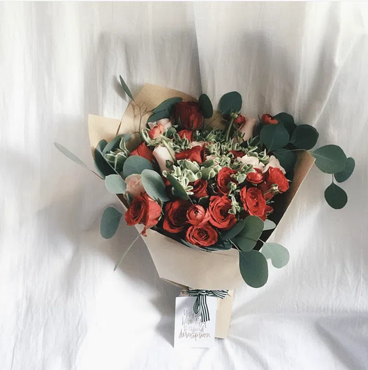 For the passionate bride: a bunch of deep red roses with just a few fillers.