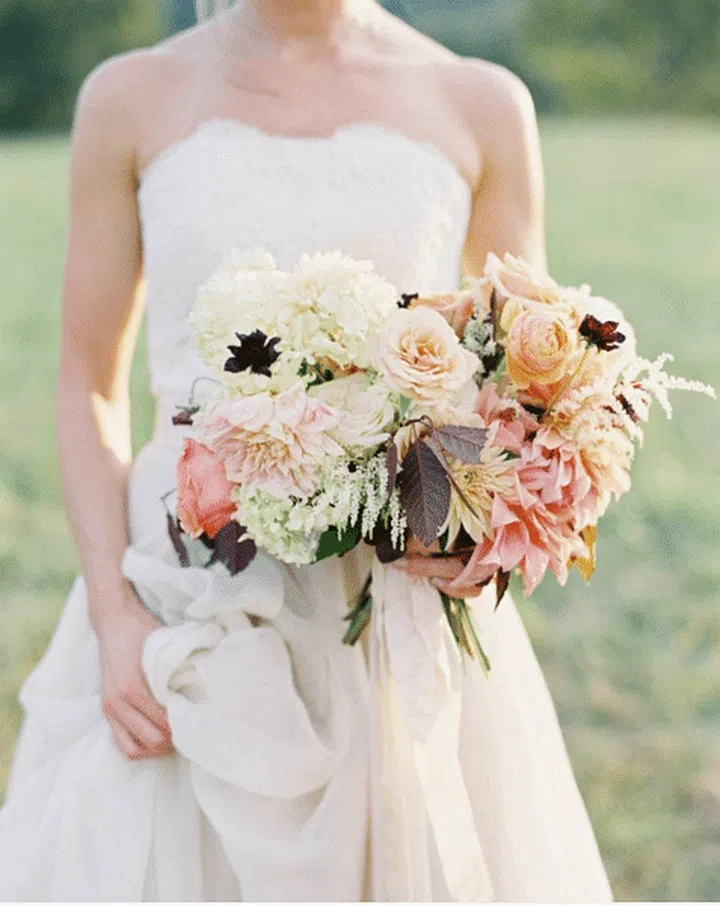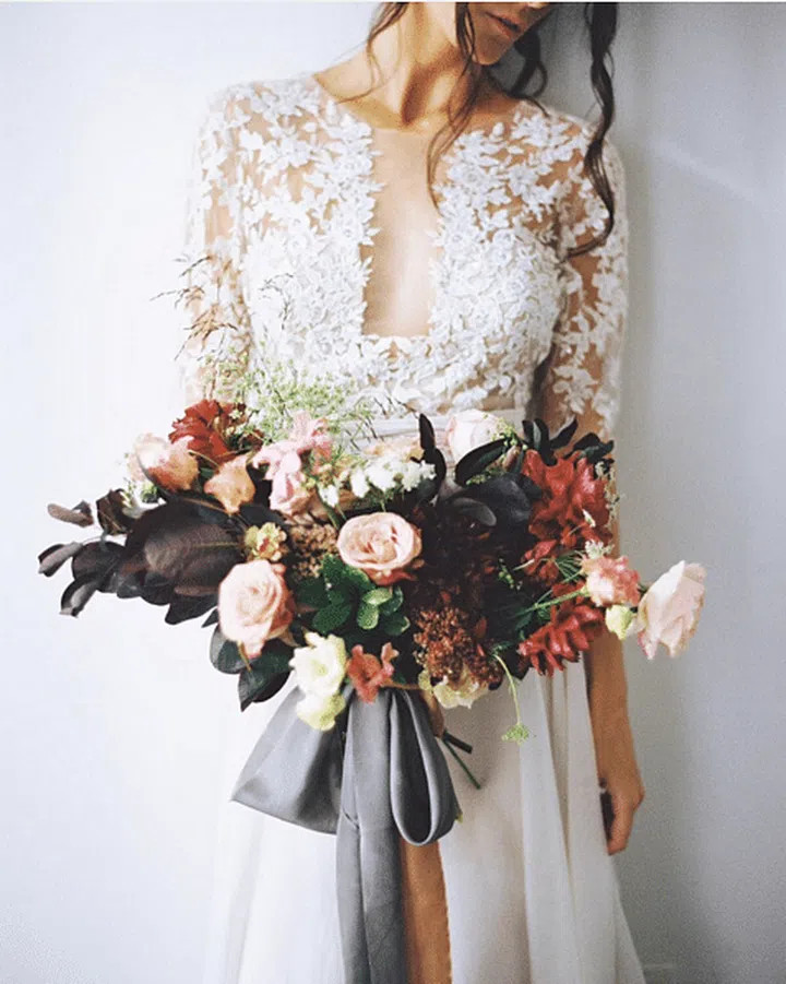 For brides seeking a darker bouquet that's just as romantic, this dramatic clutch is perfect.