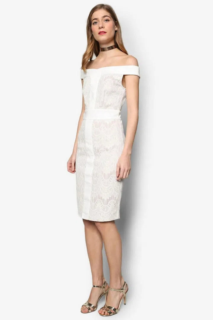 Buy now: ZALORA Premium Off Shoulder Lace Bodycon Dress
