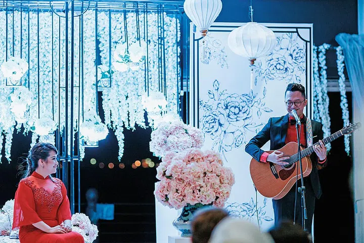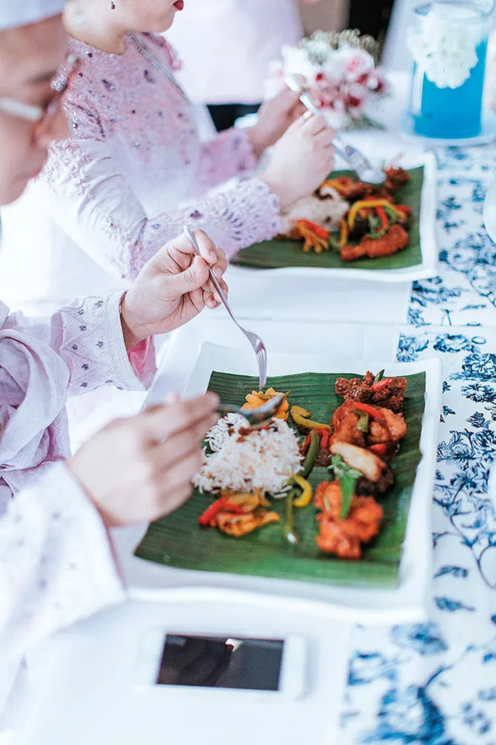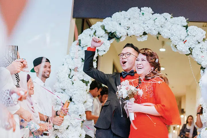 TWO CELEBRATIONS, TWO CULTURES We had the solemnisation at Timbre Music Academy at The Arts House, which was witnessed by family and very close friends only in January this year. Our receptions were held at the SAF Yacht Club in August 2016. There was a traditional Malay celebration for about 700 guests during the day, and a sit-down dinner for 200 in the evening. We went for Oriental-themed decor to honour Syaza’s Chinese heritage.