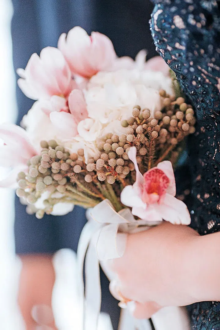 For dinner, Syaza carried this elegant bouquet with her favourite orchids.
