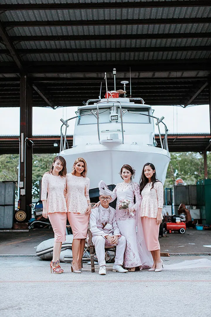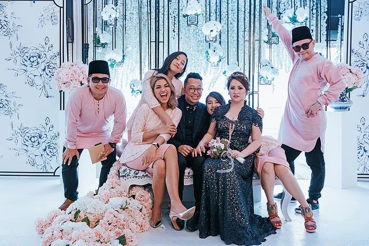 Syaza’s bridesmaids, who included Singapore Idol alumnus and DJ Tabitha Nauser, wore coral that complemented the couple’s lilac outfits.