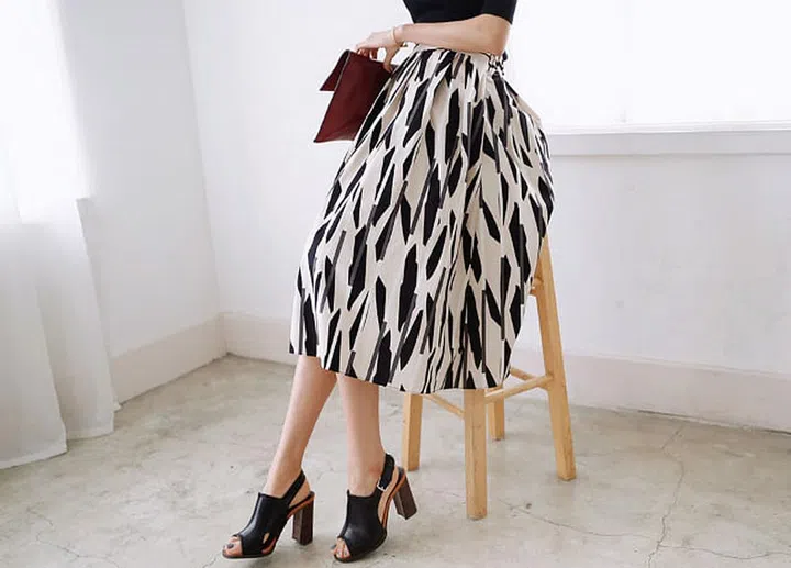 This is an feminine midi skirt in a geometric print that will turn heads. It goes well with a nice knit top or classic blouse and fits up to Korean Size 66. Shop this skirt at cool-find.me-in.kr/Diya-Midi-Skirt