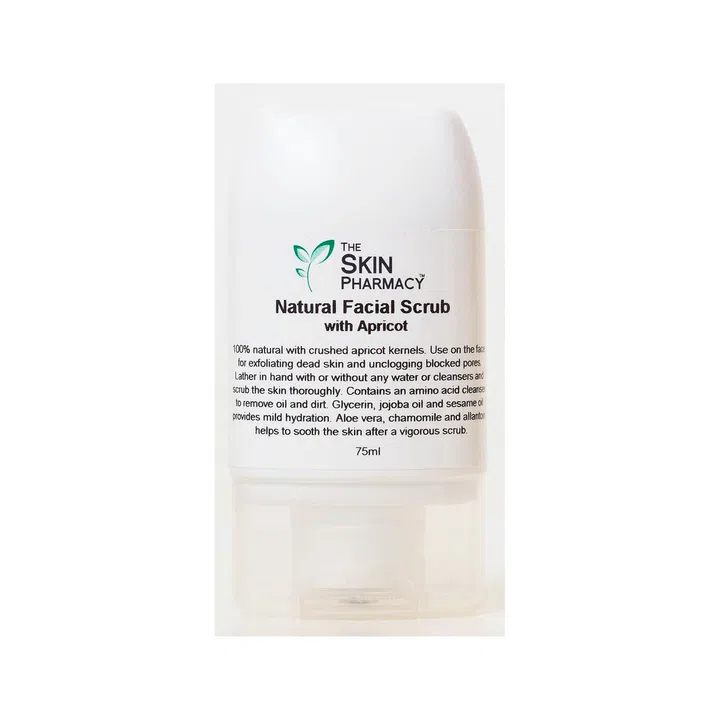The Skin Pharmacy Natural Facial Scrub with Apricot, $29.90 (75g), has crushed apricot kernels and moisturising ingredients like glycerin and jojoba and sesame oils.