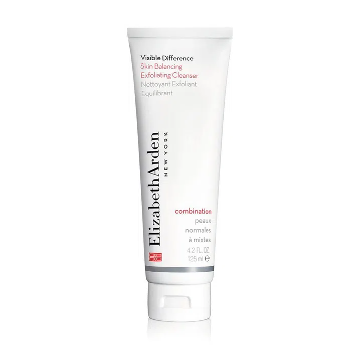 Elizabeth Arden Visible Difference Skin Balancing Exfoliating Cleanser, $43 (125ml). The foam feels comforting on dry areas while micro-beads gently cleanse the oilier parts on your face.