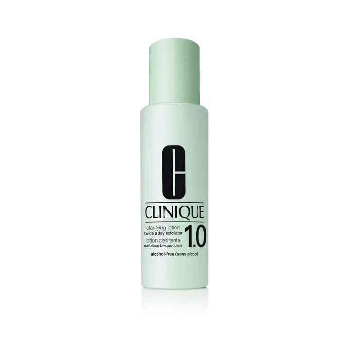 Clinique Clarifying Lotion 1.0 Twice-a-Day Exfoliator, $39 (200ml), is an alcohol-free formula for gentle, non-drying exfoliation.