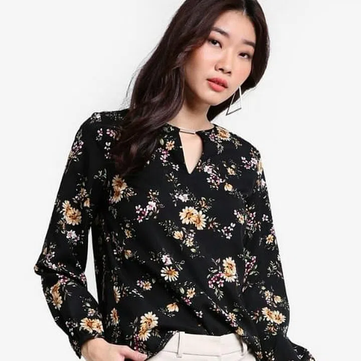 DABAGIRL leaf pattern choker blouse $100 from Zalora