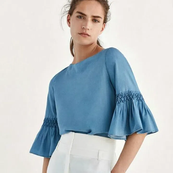 Denim blouse with textured weave detail $95 from Massimo Dutti