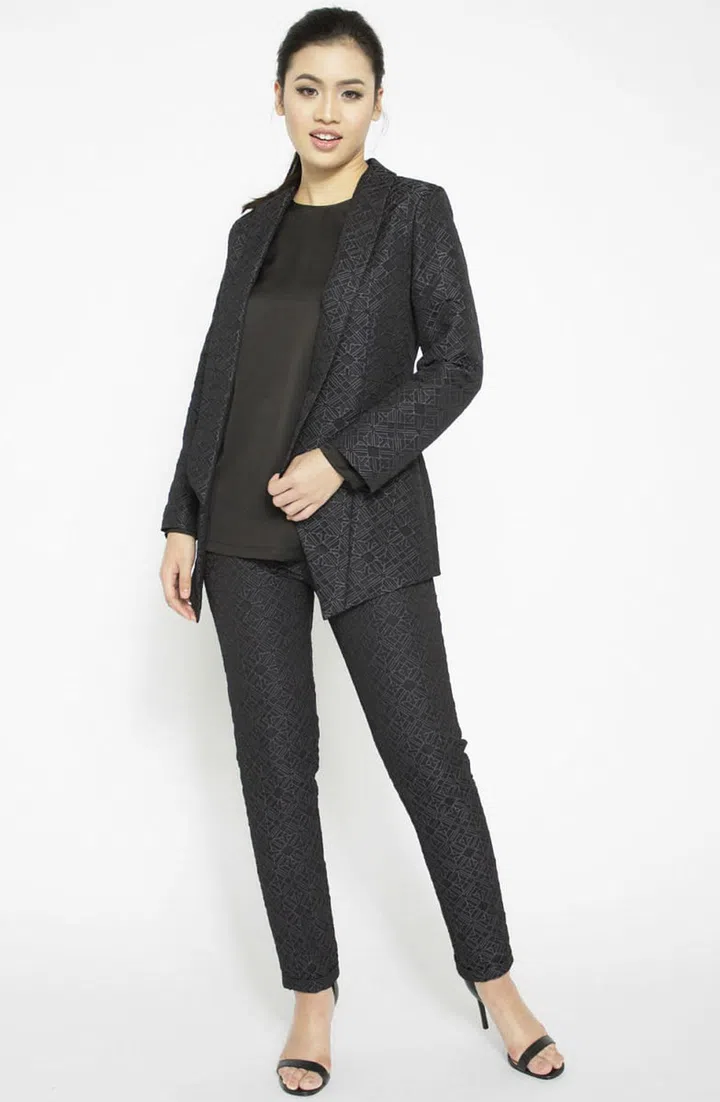 This versatile blazer is perfect for both boardroom and parties, charming everyone with its gorgeous jacquard details.