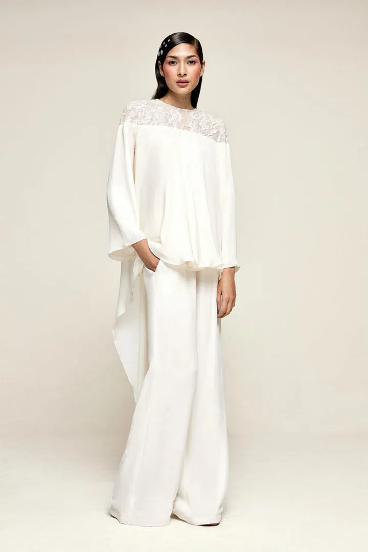 The cape-like details and the lace panel on this sophisticated top is great for bringing an ethereal flair to your getup.