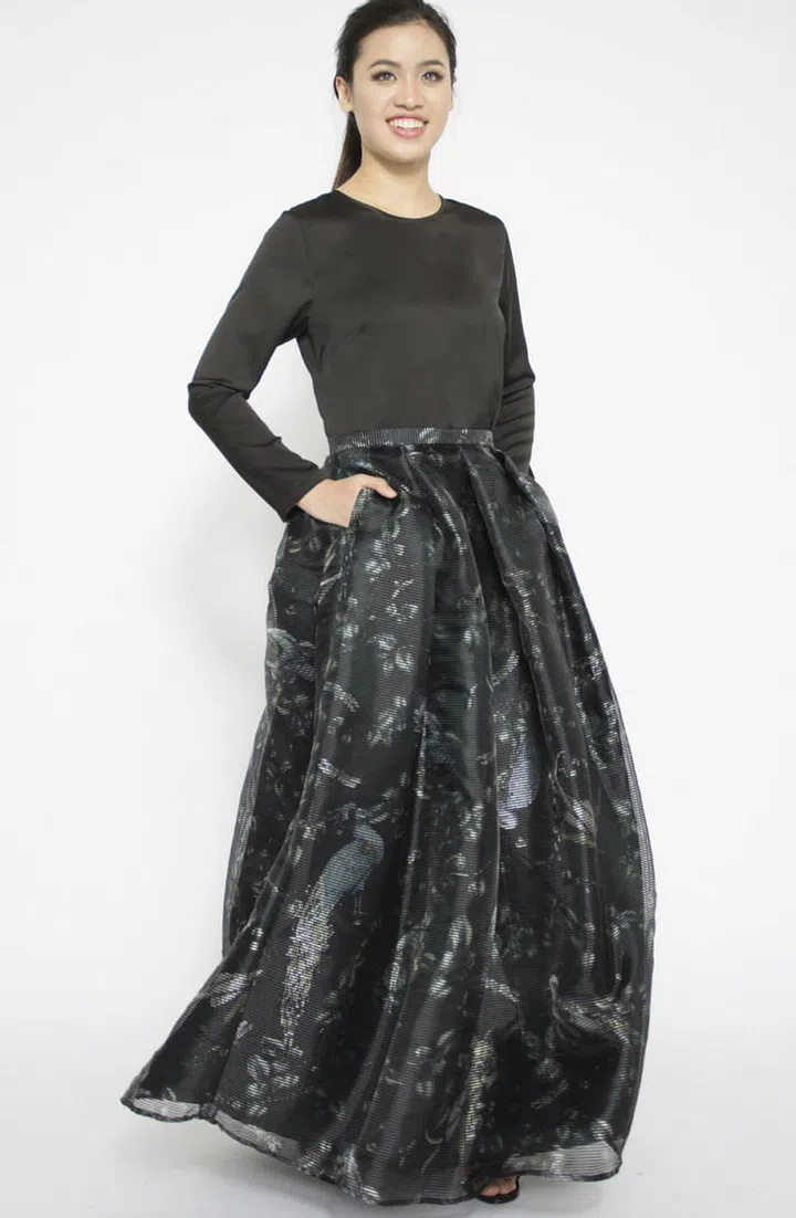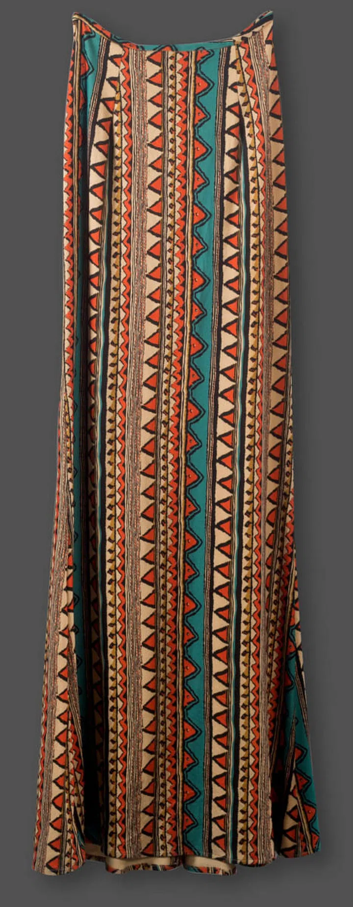 Bringing a feminine flair to any outfit is this beautiful printed maxi skirt that can be worked in many ways.