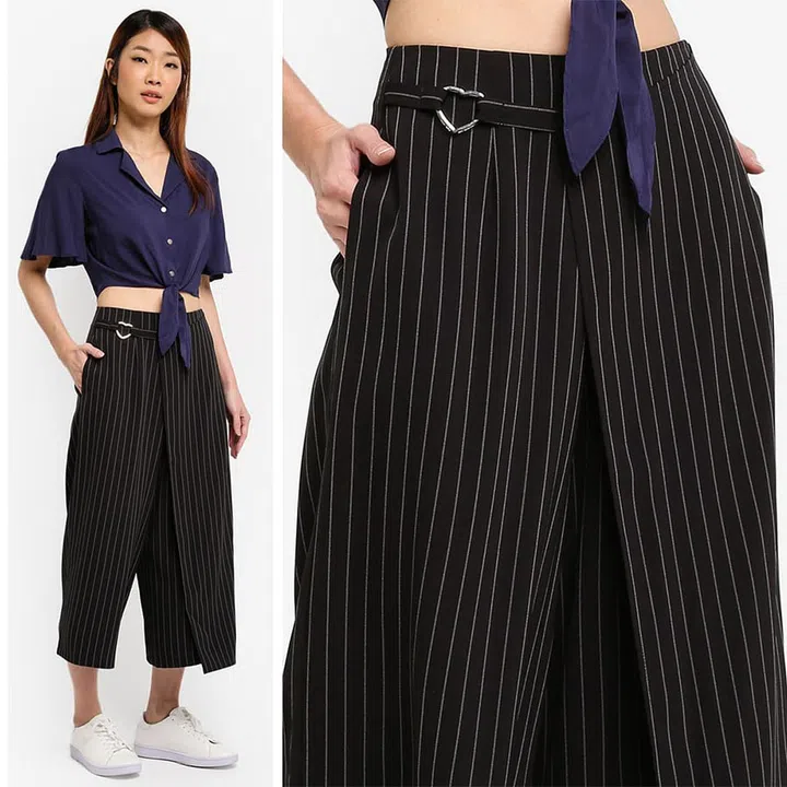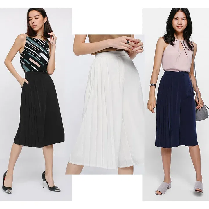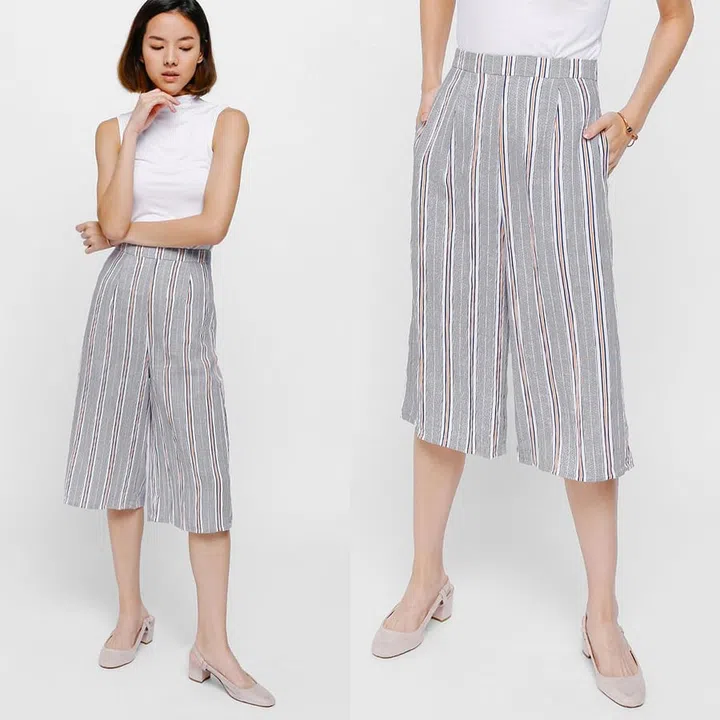 For the practical dressers who want to inject a little bit of soft colour – these culottes from Love Bonito come at a flattering length with pink and blue stripes to spice up your outfit. It has a concealed zip and functional side pockets.