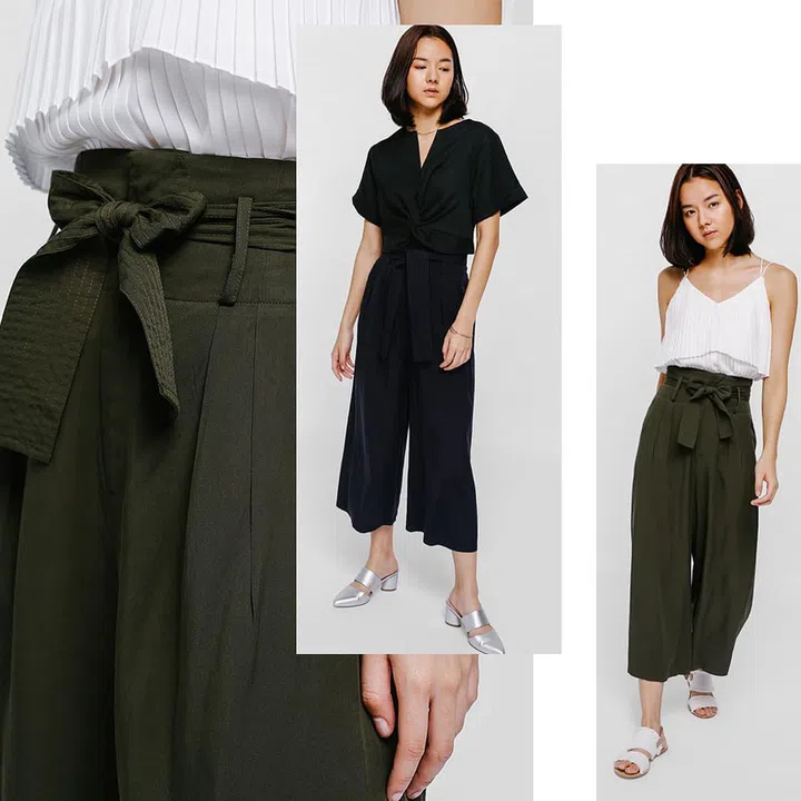 Giving safari vibes, these paper bag style culottes have been a hit amongst fashionistas. They’re stylish, chic, and versatile as it offers multiple style options. Besides switching up the kinds of tops you wear with these culottes, you can choose wear them with or without the sash – depending on the type of occasion. There are also side pockets (functional, no less) for our convenience.