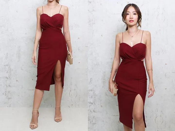 What's not to love about flattering bustier necklines and hourglass silhouettes? Be unreservedly sexy and party-ready in this wine cocktail dress.