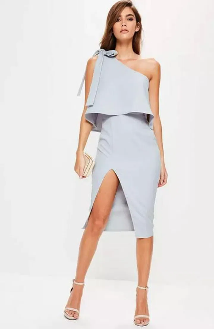 Keep it chic and pretty with this grey midi dress with powder blue undertones. You won't need to worry over being too under or overdressed in this!