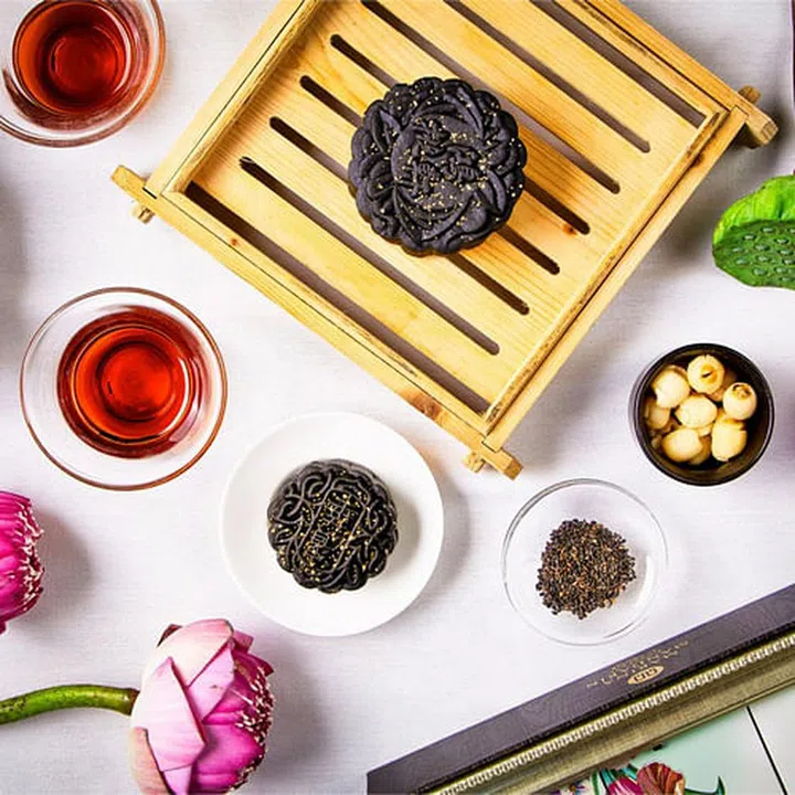 Another offering is the classic Charcoal Black Sesame Paste with Melon Seeds and Gold Dust Mooncake, which is topped off with a sprinkle of gold dust for a luxe little extra.