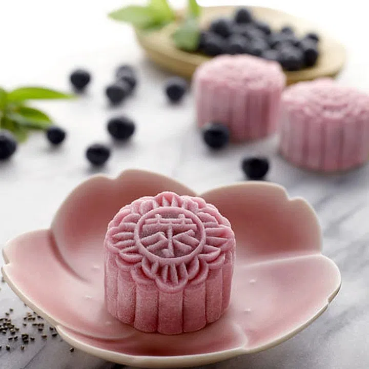 This mooncake is possibly the healthiest you can find. The new snowskin offering from the Raffles Hotel has a lotus paste filling, and a core of Greek yoghurt with açaí berry and chia seeds, known to be superfoods that are rich in anti-oxidants.