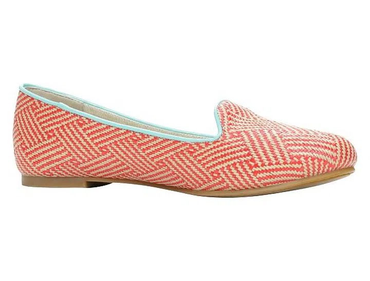 The preppy slipper loafer gets a more resort feel with this woven straw style; a style that I can so picture myself wearing on a beach holiday. I like the contrast that the turquoise trimming gives too, when paired with the sprightly coral weave of this shoe.
