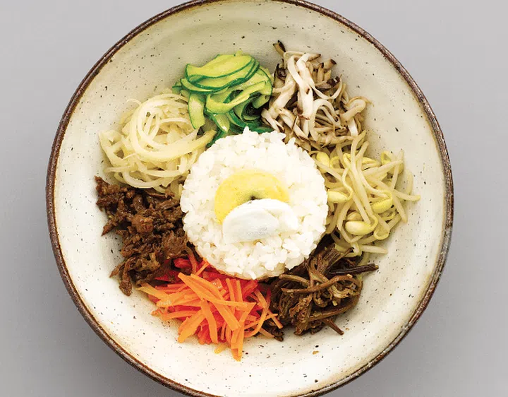 Rice topped with sautéed beef and a variety of colorful vegetables. Mixed at the table with spicy gochu-jang sauce and sesame oil.