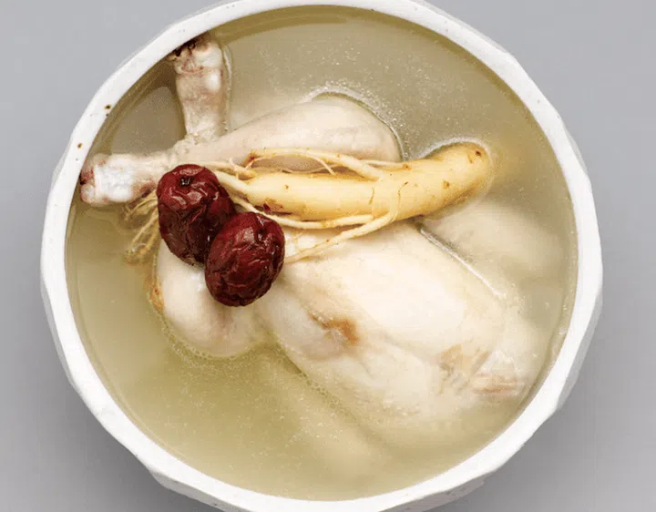 Tender whole young chicken stuffed with ginseng, jujubes, sweet rice, and whole garlic cloves and simmered until tender. The combination of chicken and ginseng creates a complex yet harmonious flavor. A classic summertime dish that revitalizes the body and soul.