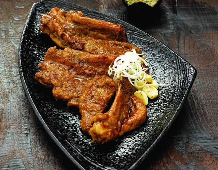 One of the most popular Korean dishes, this dish of marinated beef or pork ribs tastes excellent when grilled. The beef ribs are marinated in soy sauce, while the pork ribs are marinated in seasoned gochu-jang.