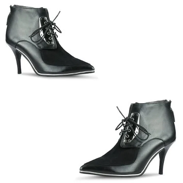 Toughen up your outfit with a fierce pair of ankle boots. With flashes of silver metal and front laces, you’ll be slaying every day in these sharp stompers.