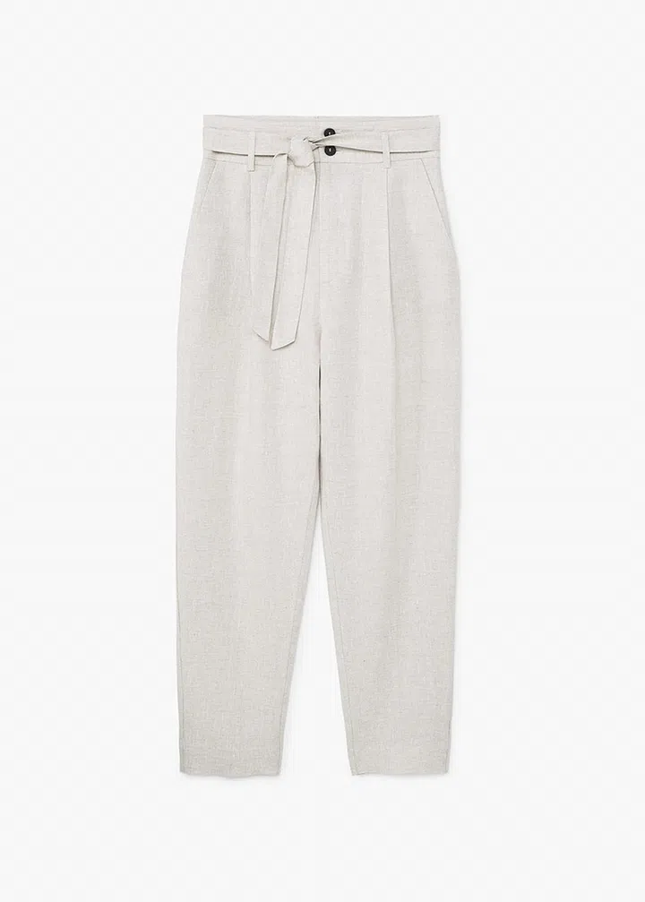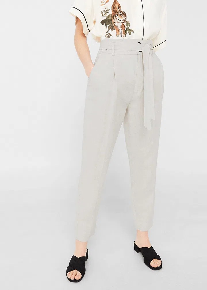 Style a pair of khaki-beige linen pants with a breezy cotton blouse and blue shades for a look that’s wonderfully evocative of summer skies and loungey pool parties. Image: Mango linen trousers, $59.90