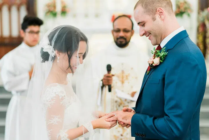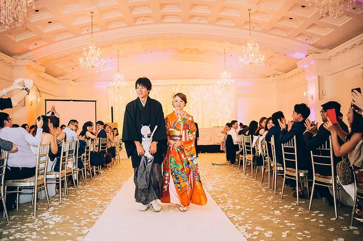 Angela Zhang, 27, and Shinsuke Fukui, 33, married their customs as well when they tied the knot in a romantic celebration at The Straits Room at The Fullerton Hotel Singapore.