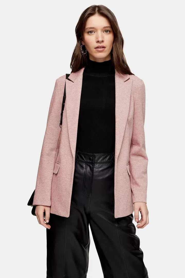Shop: Pink jersey double breasted blazer, £39 ($68.95) from Topshop
