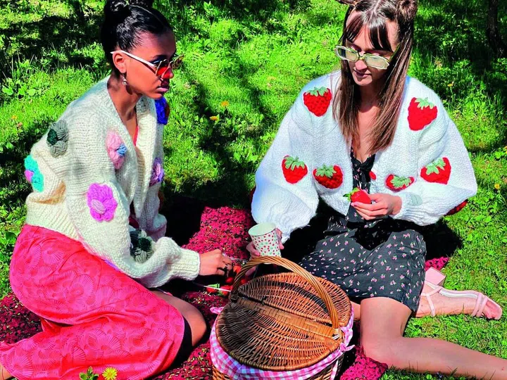 New York-based grad school students Beste Tonga and Hilal Palacioglu started their business based on the ethos of empowering women to work, as both came from families where their mothers couldn’t work and make their own money. Their sweaters and cardigans are made in Turkey, where they hail from, and handmade by women who have been knitting for most of their lives – that includes their friends and family members. Little did they know that with the creation of their very affordably priced Red Strawberry and Cloud cropped cardis, their popularity would start soaring on Instagram and Tiktok.