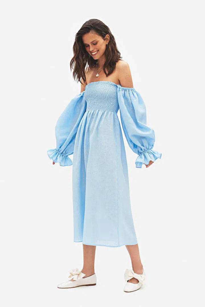 Everyone’s obsessed with a good sleeve detail. There’s just something about an oversized shoulder design that elevates the desirability of a dress, as seen in this dress by Naya Rea. Besides the eye-catching sleeves, this dress also gets two-thumbs up for its bare-back detail and scalloped hem design. Her designs are easy to wear and thoughtfully manufactured (she uses organic cotton fabric and dead stock) as she works closely with family-run businesses, which means most of her pieces are made in small quantities.