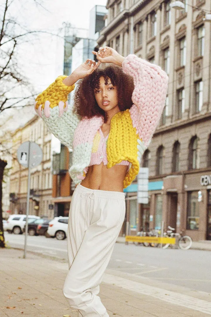 If you haven’t heard of the Colossal Knit Jumper – well, lucky you found us. This colourful chunky cardigan handmade from 100 percent jumbo merino wool (a natural, renewable, biodegradable fibre that feels so soft on the skin) in Northern Ireland has been trending on our Instagram feed since forever. It’s safe to say that there will never be a dull morning when you’re in a Hope Macaulay masterpiece.