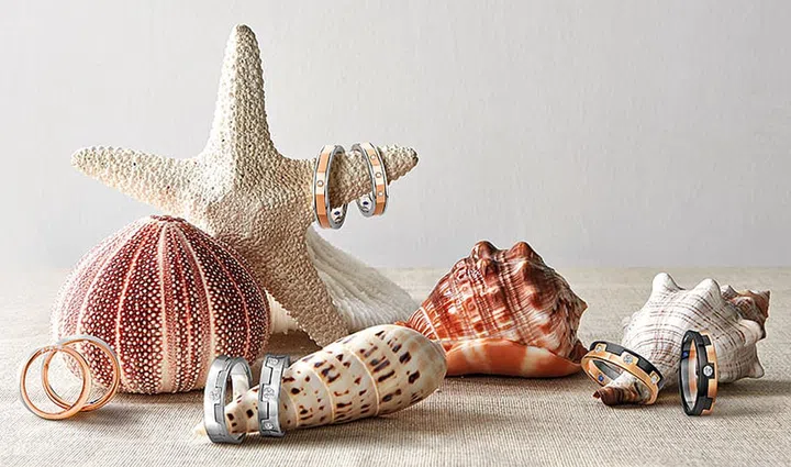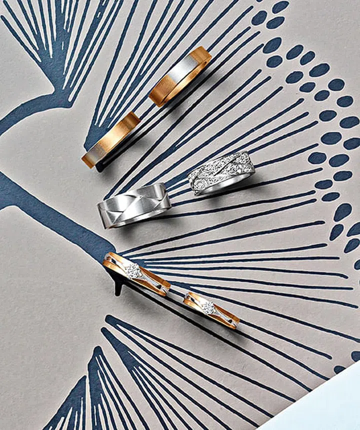 From top: Niessing Donum rose and white gold bands, Furrer-Jacot white gold bands and Forevermark rose and white gold diamond bands, from Lee Hwa Jewellery.