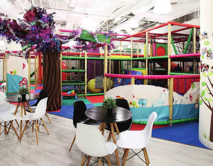 This inviting playground exudes a cheerful vibe. The whimsical murals and quirky artwork on the walls are done by local artists and are for sale, from $65 to $300. The space is smaller than the rest but it has the essentials – slides, a ball pit, rope bridges, soft slopes and even a trampoline with big balls under it. It also has the most comfy waiting area, with retro-looking sofas and coffee tables.