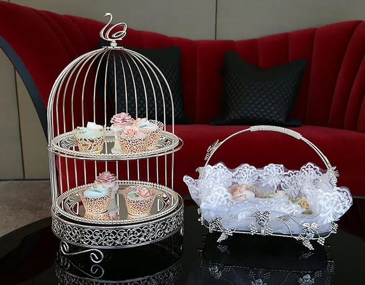 Her products, mostly sourced from wholesalers and factories in Singapore and abroad, include a 55cm-tall birdcage made from stainless steel, with two tiers to hold desserts. It costs $300.