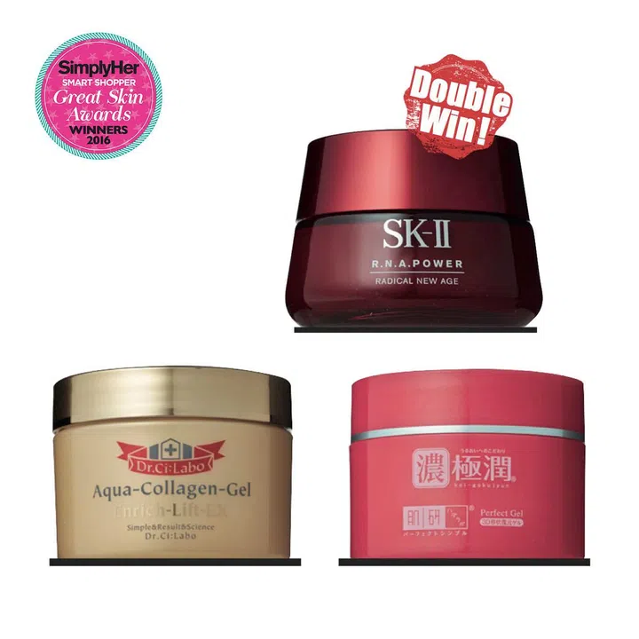 Dr. Ci:labo Aqua-Collagen- Gel Enrich-Lift- EX, $75 (50g), $150 (120g) Use the lightweight gel right after cleansing, it replaces your toner, serum, eye care and makeup base.
