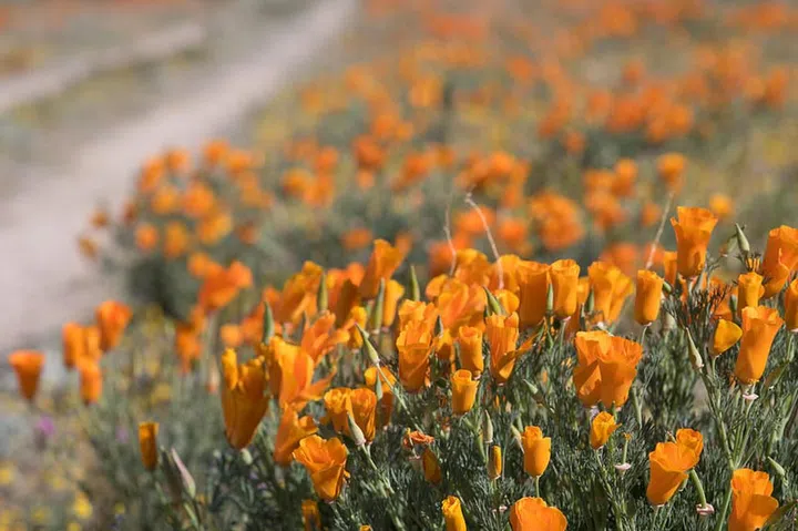 While California’s state flower can be found sprinkled across parks and highways in spring, it’s in the Antelope Valley California Poppy Reserve that the golden blooms conspire to create an ocean of orange. Located about a 1.5-hour drive out of Los Angeles, the park boasts 13km of trails that wind through gently rolling hills blanketed by wild poppies. A half-hour drive east from the reserve, in the town of Lancaster, the much-loved flower is celebrated each April with a two-day festival of games, markets and music.
