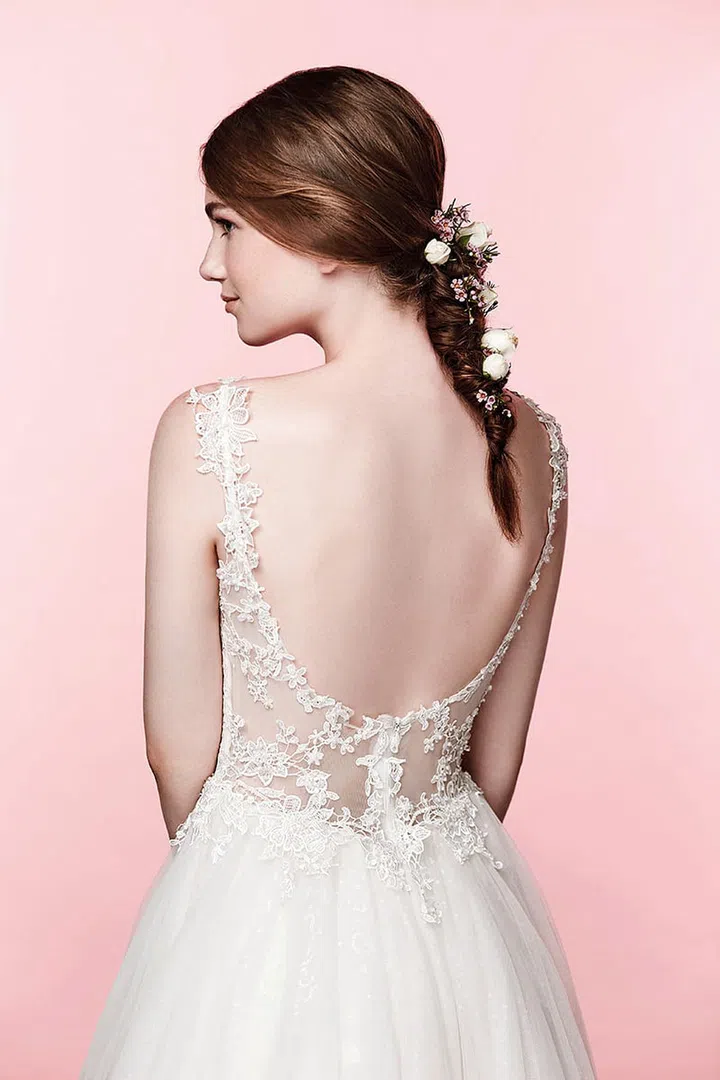 If you're opting for a low or open back, make sure the gown doesn't gape at the side of the bust. Same process applies –move or walk around for testing. If necessary, you can always add a pretty embellished strap to hold the sides in place.