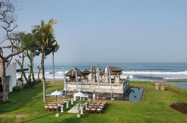 If you're looking to have an authentic Balinese wedding experience, Alila Seminyak's Enchanted Garden Wedding or Blissful Beginning packages will let you have just that. These include a commitment ceremony where you exchange vows in front of the temple's facade, on the manicured lawn facing the Indian Ocean.