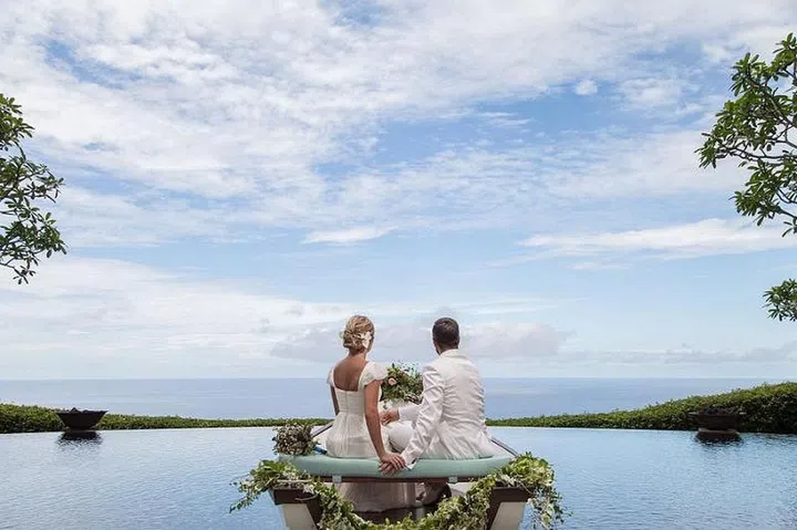 While everyone's familiar with the venue's oceanfront Wedding Pavilion, its other spaces are just as magical. One such offering? Its Water Wedding, set on a natural green floating altar upon its infinity pool perched on the cliff. See how celebrities Gisella Anastasia and Gading Marten, as well as real couples Eliza and Heng Jien and Amy and Jay celebrated their weddings here.