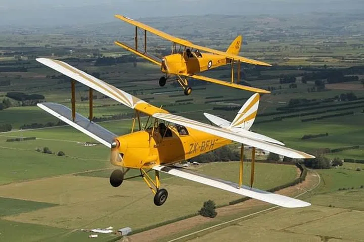 Compared with these, the sturdy yellow Tiger Moth outside looks quite ordinary – particularly to those wishing to take a 10-minute joy flight (NZ$95; US$74). But once the leather helmet and goggles are strapped on and the propeller jerks into action, the passenger in the front seat of this open biplane realises this is a different sort of flying.