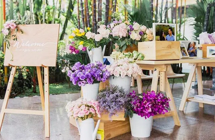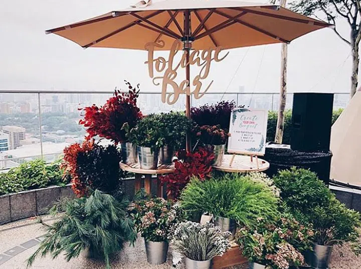 Fresh cut blooms are lovely but might prove to be costly, especially if you have a larger guest list. A foliage bar is equally lovely, and can last longer than flowers. But do take note some types of foliage can rack up costs even higher than flowers!