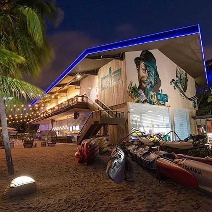 What better place for Hawaiian cuisine than by the beach? Eat your fill with menu items like Wagyu Beef Burgers, fresh Poke Bowls, and, in true blue beach-bar style, cocktails served in tiki mugs.