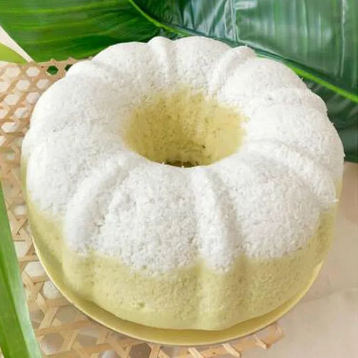 That’s a steamed pandan coconut sponge cake that’s made with freshly squeezed pandan juice and coconut milk. It isn’t airy like most sponge cakes though, it’s soft, moist, and a little dense, which gives it a bit of bite.