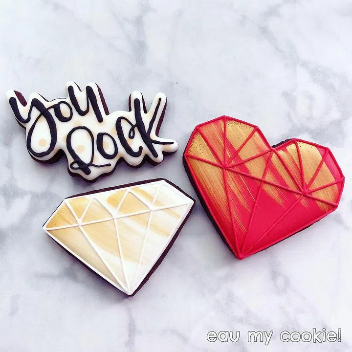 We’re really impressed at the range of designs she is able to do. Check out her cookie gallery, you’ll find calligraphy cookies, cookies of cartoon characters, and even Gucci perfume bottles.