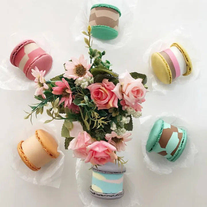 And if you want to kick it a notch higher, get bespoke macarons that can be printed with anything you’d like, say floral patterns, stripes, or even your mom’s name.