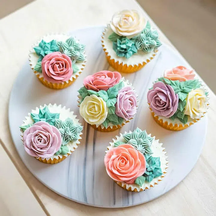 There are also cupcakes available, covered with multicoloured pastel roses, or crowned with a succulent or cacti.