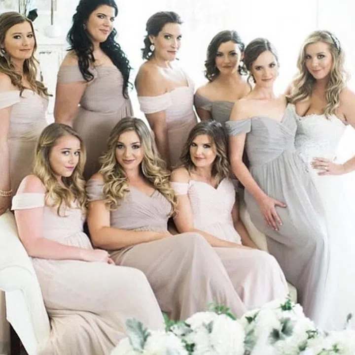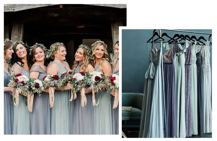 This muted hue is a graceful and sophisticated option for your bridal party. To keep it from looking montonous, go for an ombre palette.