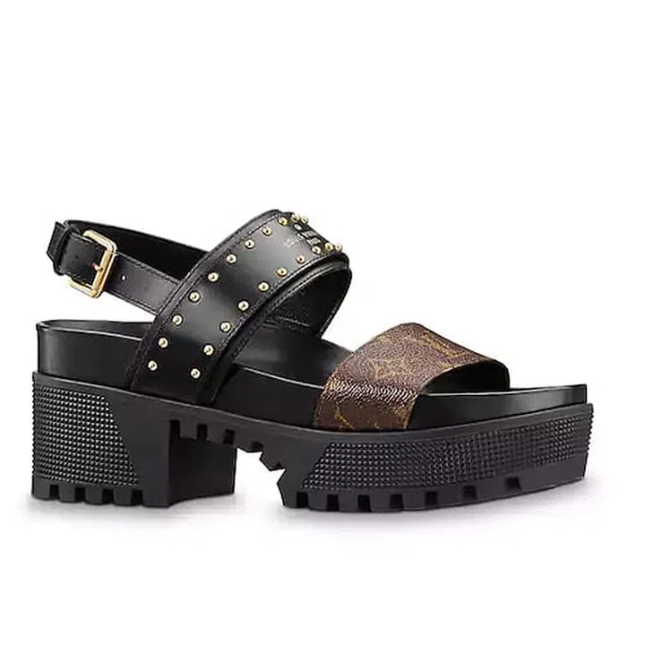 For those who prefer an edgier aesthetic with a refined twist, these cutting-edge platform sandals should be considered. It’s essentially Louis Vuitton’s iconic Laureate desert boot, but reinterpreted as a platform sandal. Featuring the brand’s patent Monogram canvas, rock’n’roll studs and a chunky heel, these versatile kicks will practically go well with any outfit of choice.