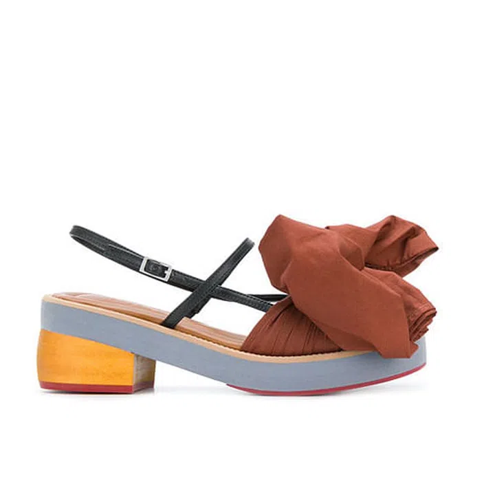 True to Marni’s tongue-in-cheek aesthetic and love for colour blocking, these multicoloured cotton leather bow embellished sandals feature rich textures and equally rich colours to add a little pizzazz to your everyday outfit. The massive statement bow is what bought us over, really. We love the contrast of the earthy terracotta shade against the choice of pastels, and how contemporary the entire number looks.